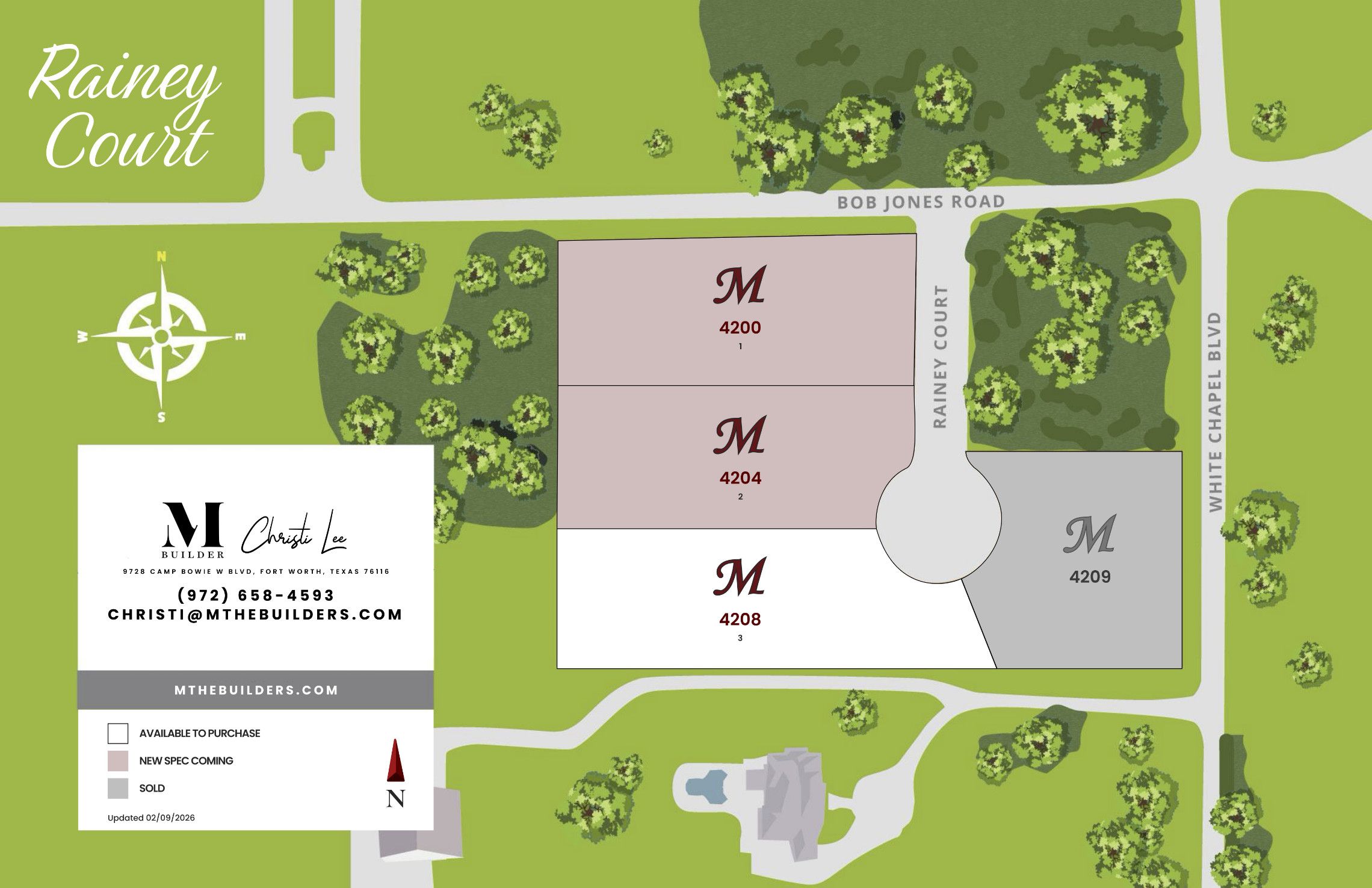 Rainey Court, a truly singular living experience, is located off Bob Jones Road and Whites Chapel Boulevard in Southlake, one of North Texas’s desirable communities. Rainey Court offers the rare opportunity to build on one of only three one-acre lots nestled around an intimate cul-de-sac within a grove of beautiful, timeless oaks and a natural, well-maintained greenspace.